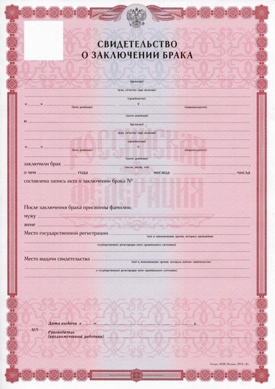 • Документ: Свидетельство о заключении брака РФ